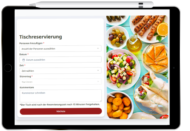 Mit unseren Funktionen "Tischreservierung" & "Vorbestellung" können Ihre hungrigen Kunden ganz einfach einen Tisch reservieren und ihr Lieblingsessen vorbestellen.